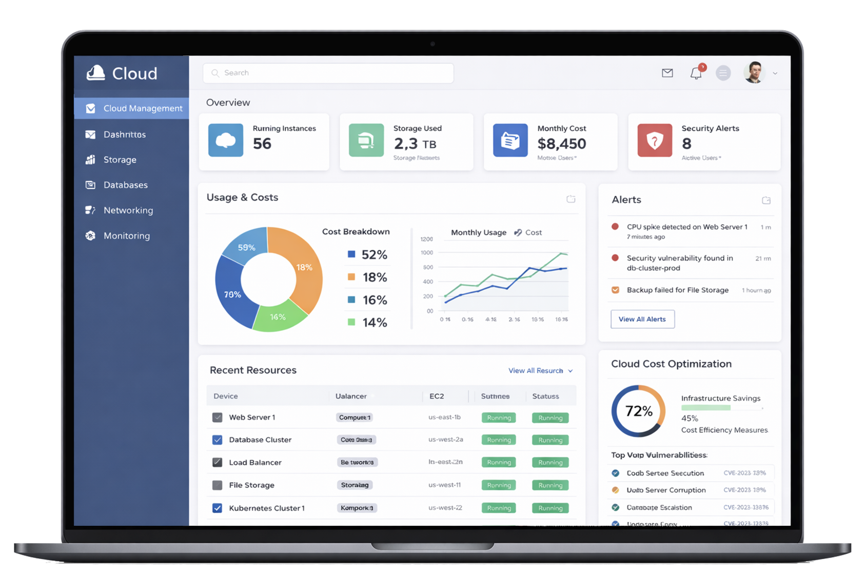 Our focus is not only on infrastructure but also on cloud-based software ecosystems that enable scalability, flexibility, and innovation. We ensure that cloud solutions are aligned with security, compliance, performance, and long-term business objectives.